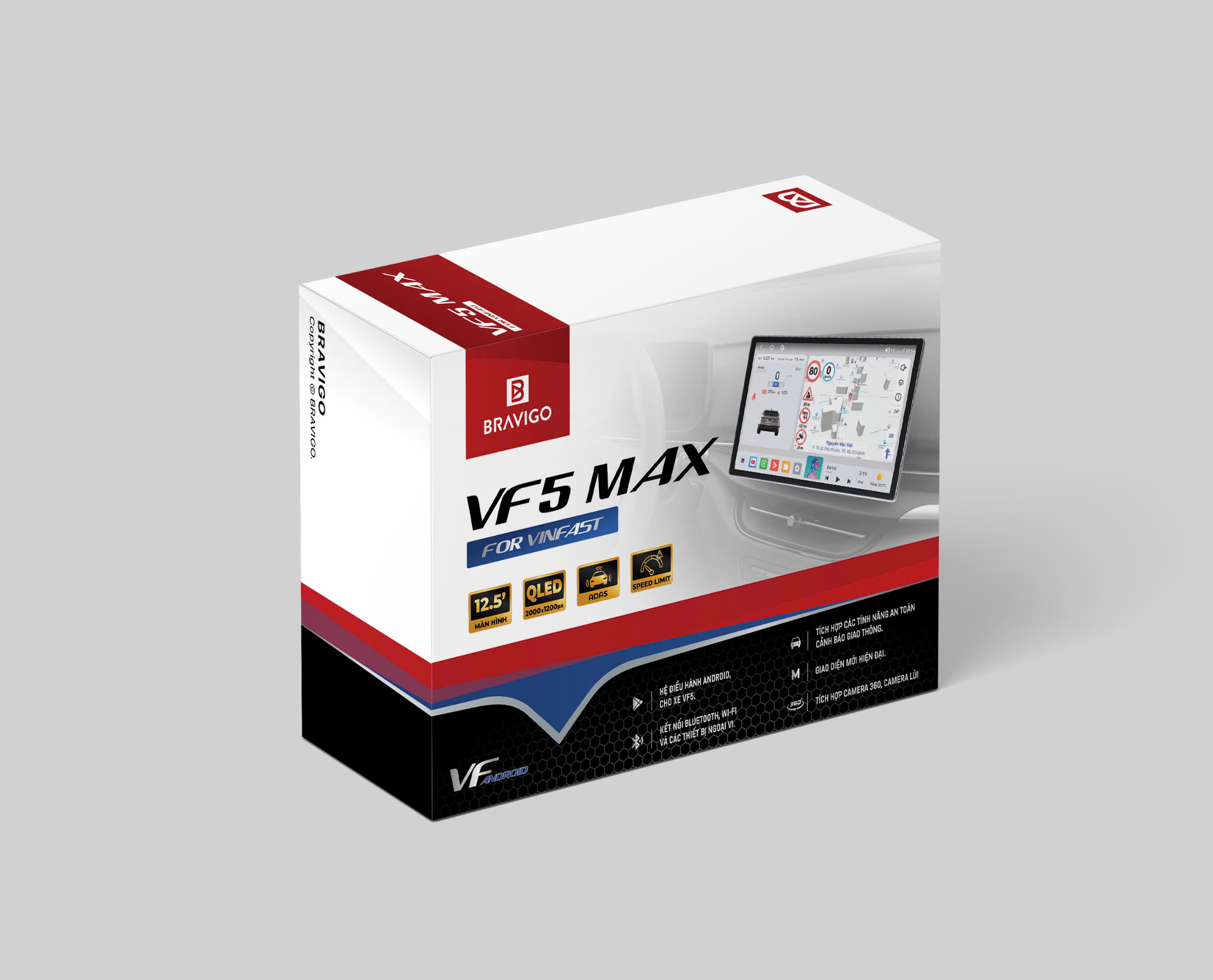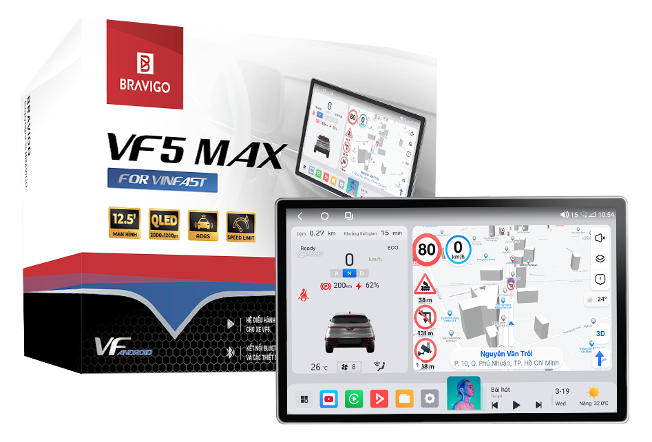 Khác biệt với các sản phẩm màn hình android lắp ngoài thông thường, Bravigo VF5 Max được phát triển và tối ưu riêng cho xe điện VF5 từ thiết kế phần cứng đến phần mềm. Với kích thước chuẩn 12.5 inch, sản phẩm vừa vặn với taplo xe, mang lại cảm giác sang trọng, đồng nhất và hiện đại cho không gian nội thất.