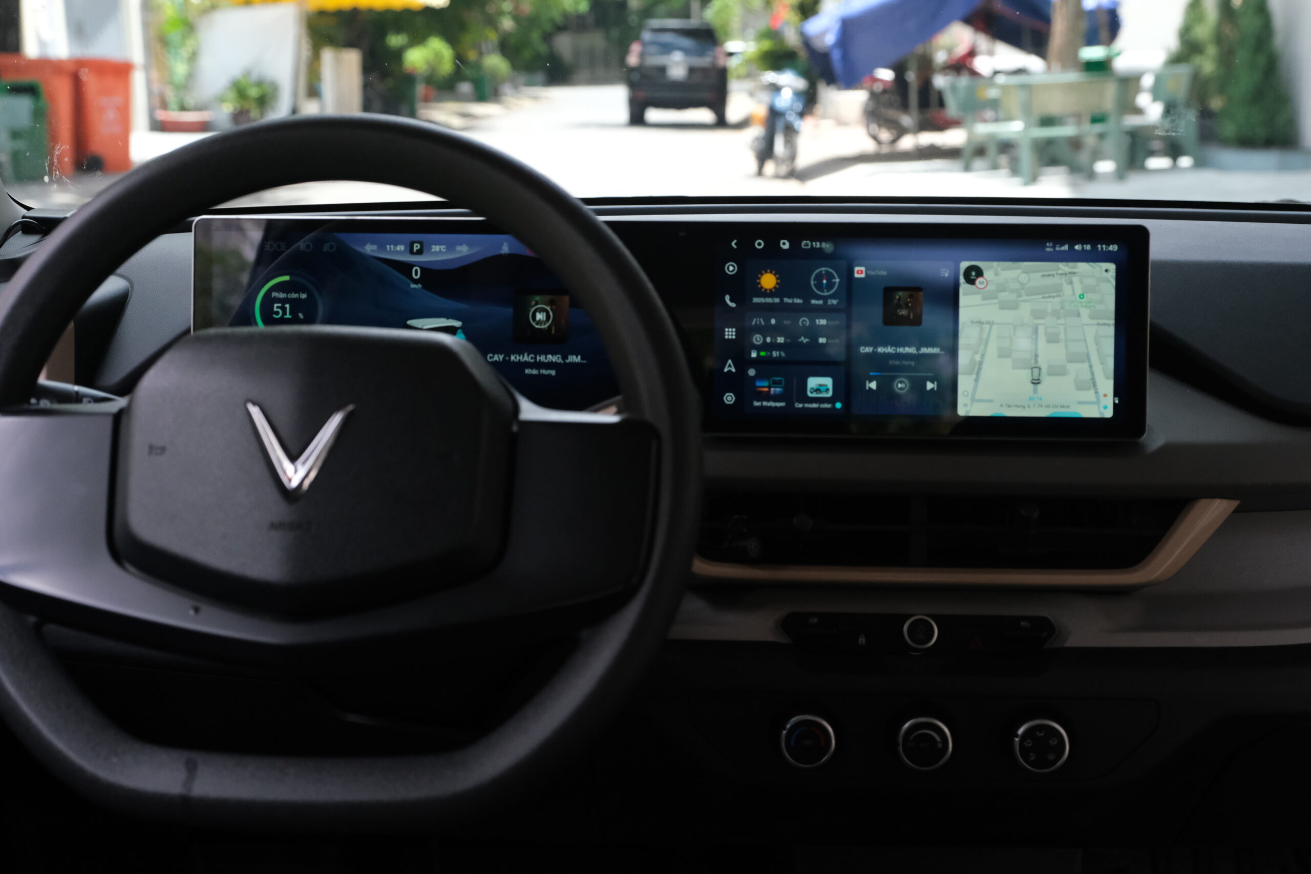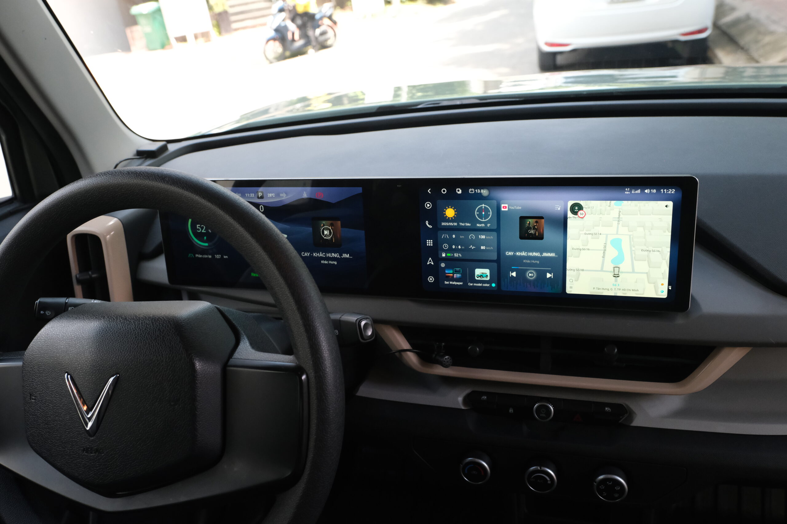 Màn hình hỗ trợ song song hệ điều hành gốc VinFast và Android 13.0, giúp đảm bảo khả năng tương thích với các tính năng sẵn có trên xe. Việc chuyển đổi linh hoạt giữa hai hệ điều hành mang đến trải nghiệm liền mạch, không bị gián đoạn trong quá trình sử dụng.