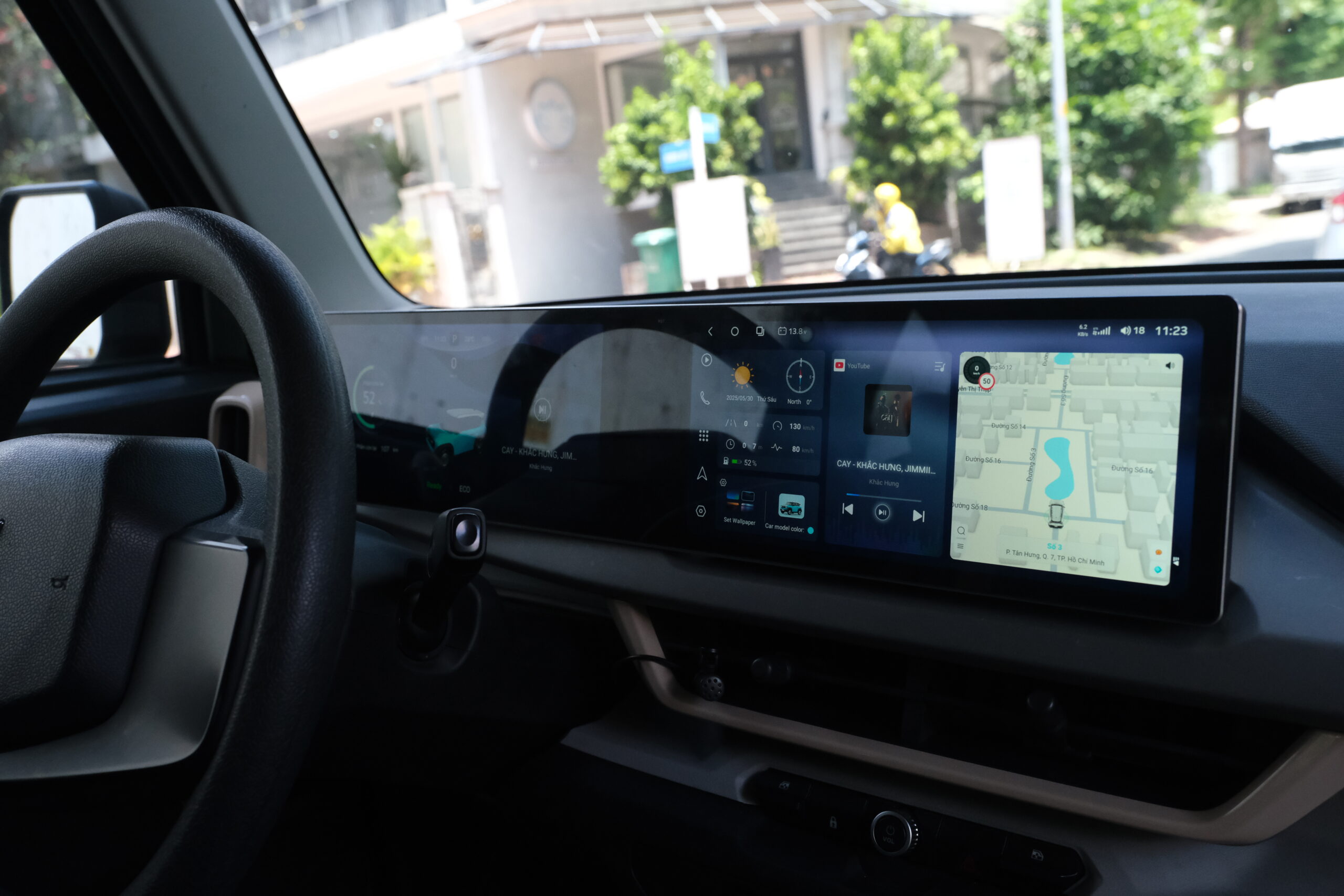 Giao diện kép ODO & Android: Hiển thị song song thông tin vận hành của xe (ODO, quãng đường, mức pin) và các ứng dụng Android trên cùng một màn hình, tối ưu hóa sự tiện lợi khi lái xe mà không cần chuyển đổi qua lại.