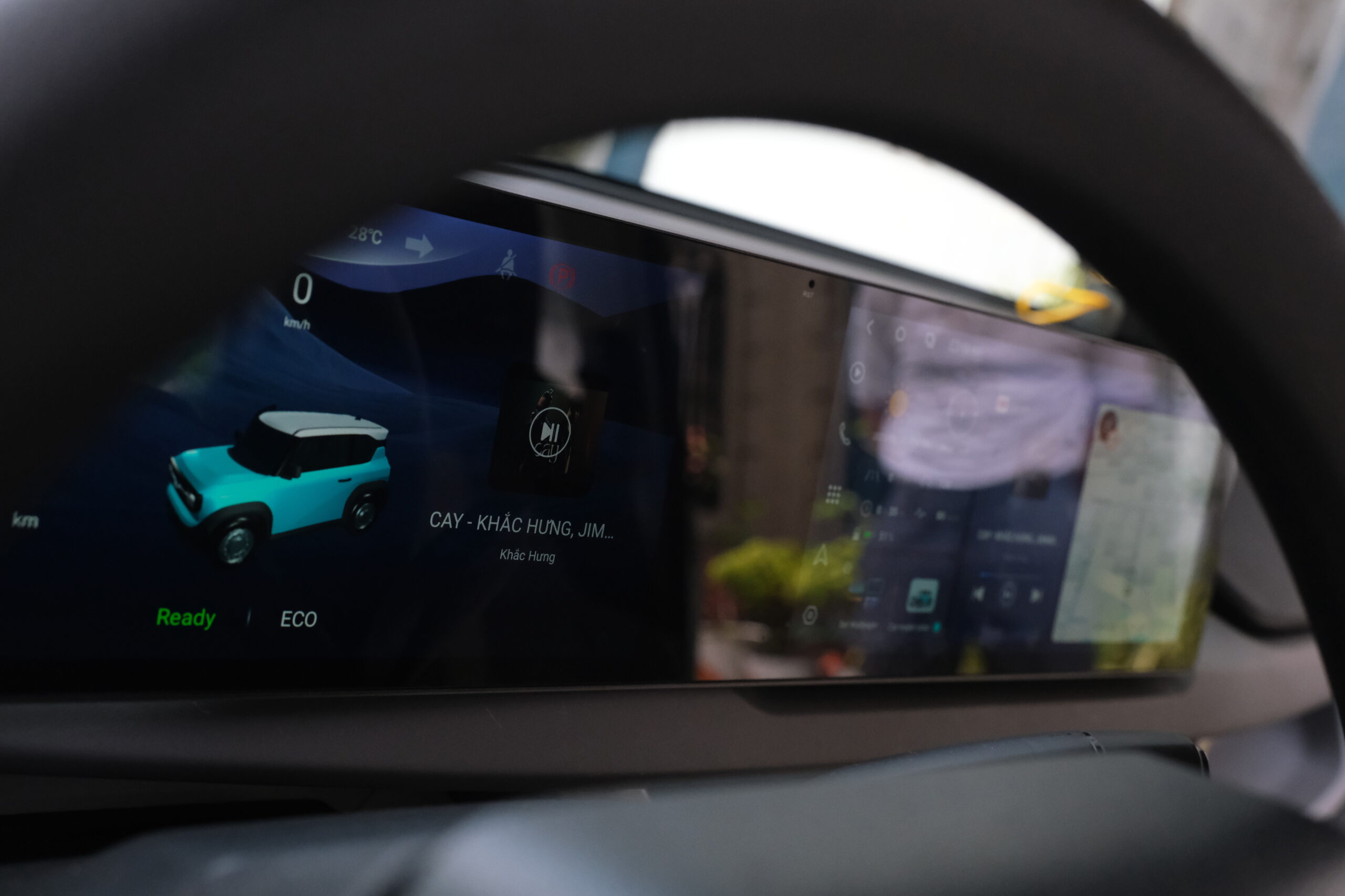 VF3 DuoMax sở hữu màn hình khủng lên đến 20.8 inch, bao phủ gần như toàn bộ bảng táp-lô. Thiết kế màn hình đôi mang đến góc nhìn toàn diện, hiển thị đa nội dung rõ nét và liền mạch, tạo cảm giác như đang ngồi trong một mẫu xe công nghệ cao cấp.