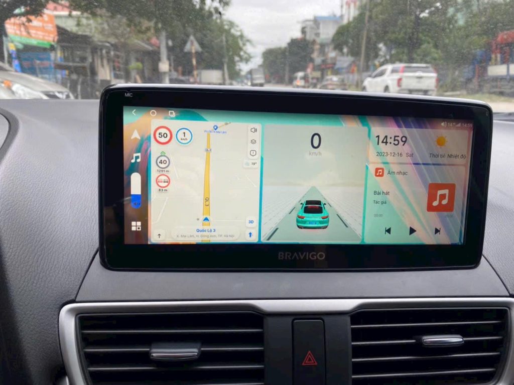 Màn hình Bravigo Blux Mazda đang được tích hợp hai trợ lý giọng nói thông minh là BRAVIGO AI và Trợ lý Kiki. Giúp bạn có thể sử dụng khẩu lệnh hoàn toàn bằng tiếng Việt để mở nhạc, xem video, xem camera, tìm đường, tra cứu thông tin…