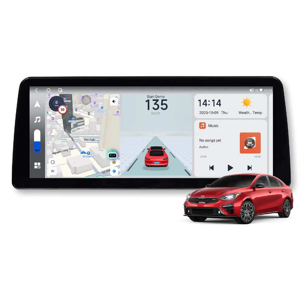 Màn hình Bravigo Pro Tech Cerato sở hữu thiết kế màn hình ngang vô cùng cuốn hút với kích thước lớn lên đến 12.3 inch, được tạo hình tỉ mỉ từ từng góc cạnh, mang đến sự sang trọng và đẳng cấp cho không gian nội thất xe.