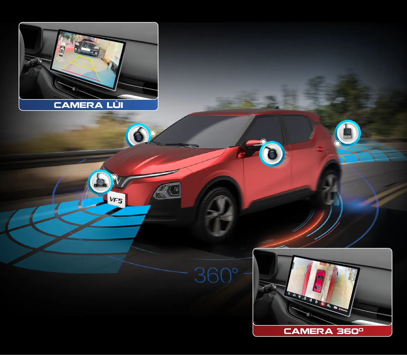 Tích hợp camera lùi, cam 360 hỗ trợ lái xe